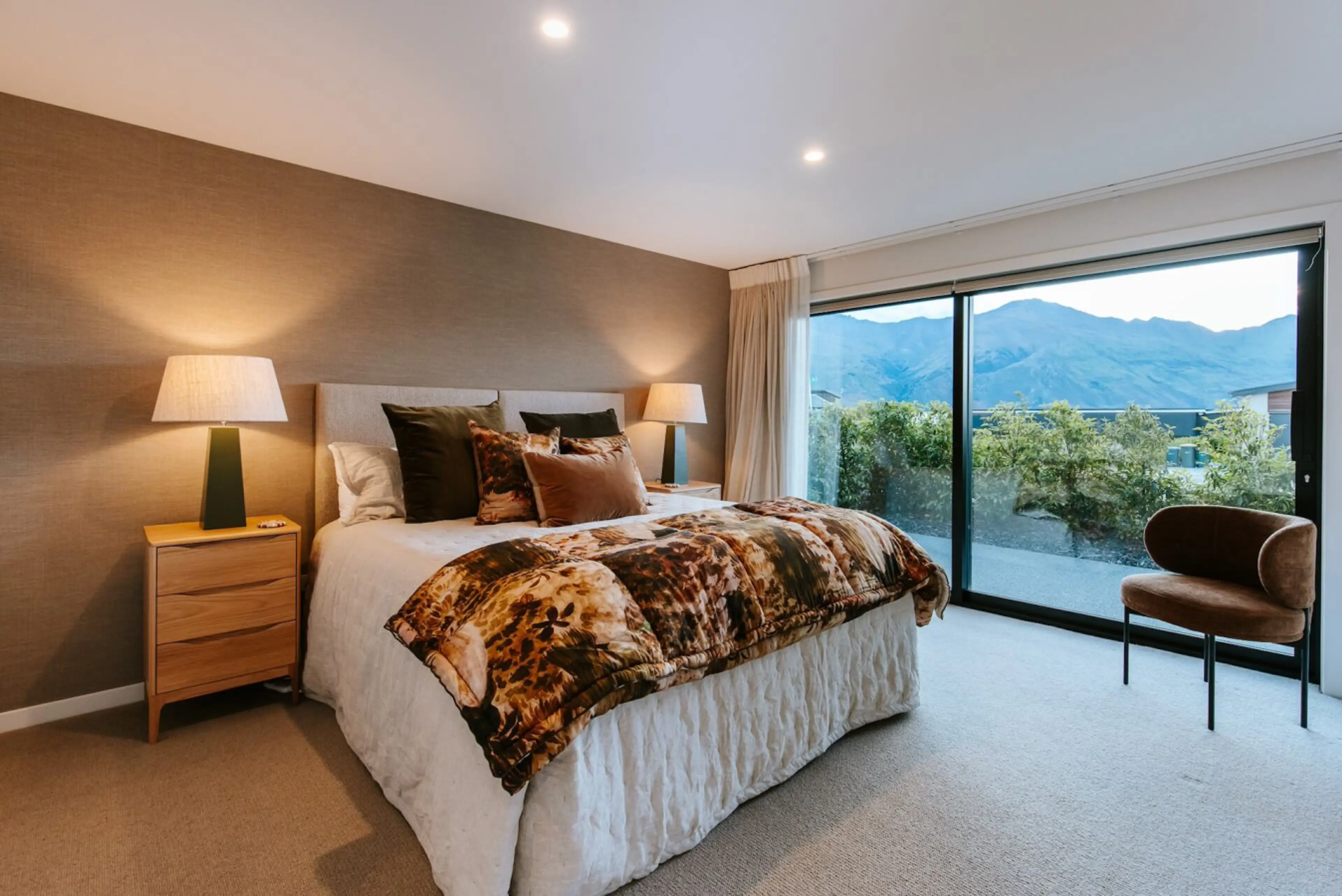 Korari House is a modern five-bedroom luxury holiday home enjoying stunning views of Lake Wanaka and the Southern Alps. Set over multiple levels, the holiday home has been thoughtfully designed to suit families and groups, with five beautifully appointed bedrooms, each featuring its own ensuite bath...